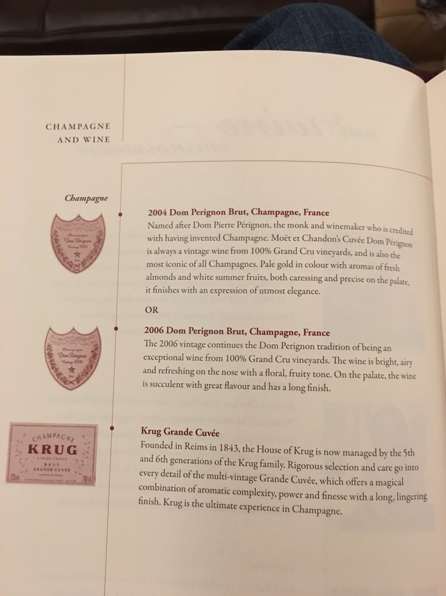 Definitely the highlight of the flight! Two vintages of Dom and 1 vintage of Krug. I had all 3! I then had my wife do a blind taste test for me, and luckily I chose Krug, but let me tell you, it was actually hard. I took down probably about 1.5 bottles worth on the flight.